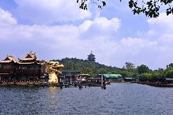 The lake, located in the suburbs, is surrounded on three sides by picturesque mountains and forests, which are romantically hidden in a misty haze. According to legend, the lake was formed of pearls, which were dropped on the ground by a phoenix and a dragon. It harmoniously combines the charming lyrics of the landscape and ancient architectural monuments.