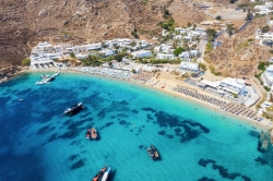 Вы найдете множество разнообразных пляжей острова. Райский пляж на южной стороне отличается атмосферой вечеринок. Если слишком многолюдно, отправляйтесь на пляж Псару, Парага или Платис Ялос. Посетите Агиос Стефанос, чтобы увидеть огромные круизные лайнеры в порту города Миконос. Пляж Агиа Анна в Калафатисе на восточной стороне менее загружен и обычно имеет хорошие условия для виндсерфинга.